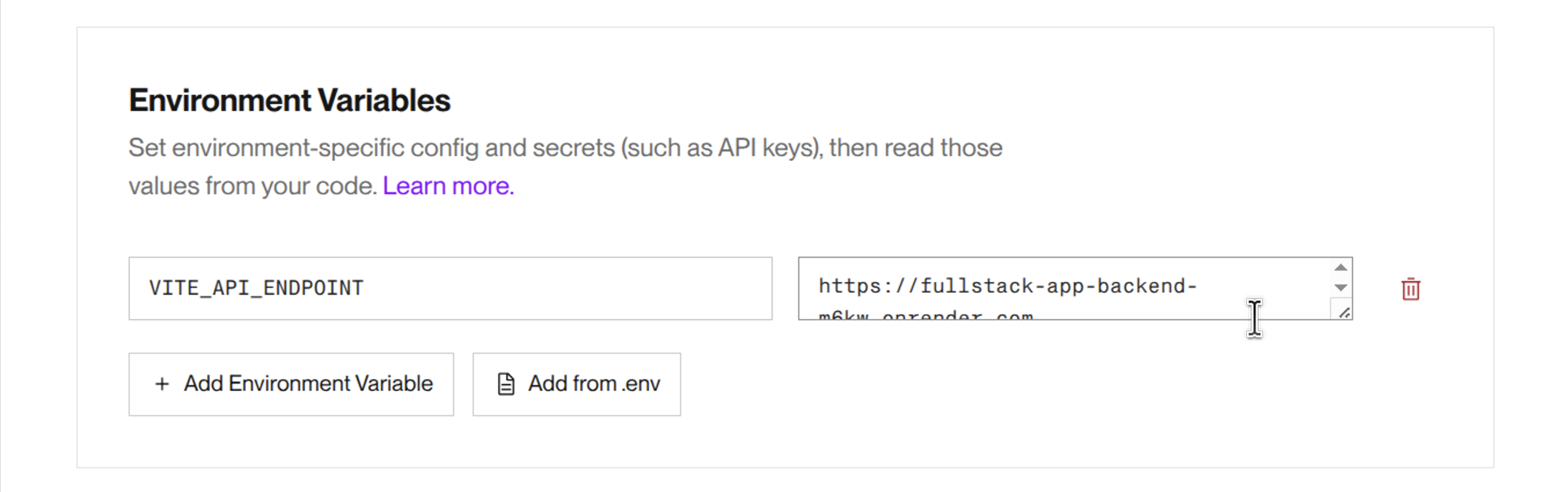 VITE_API_ENDPOINTに先ほどデプロイしたバックエンドのURLを設定します。